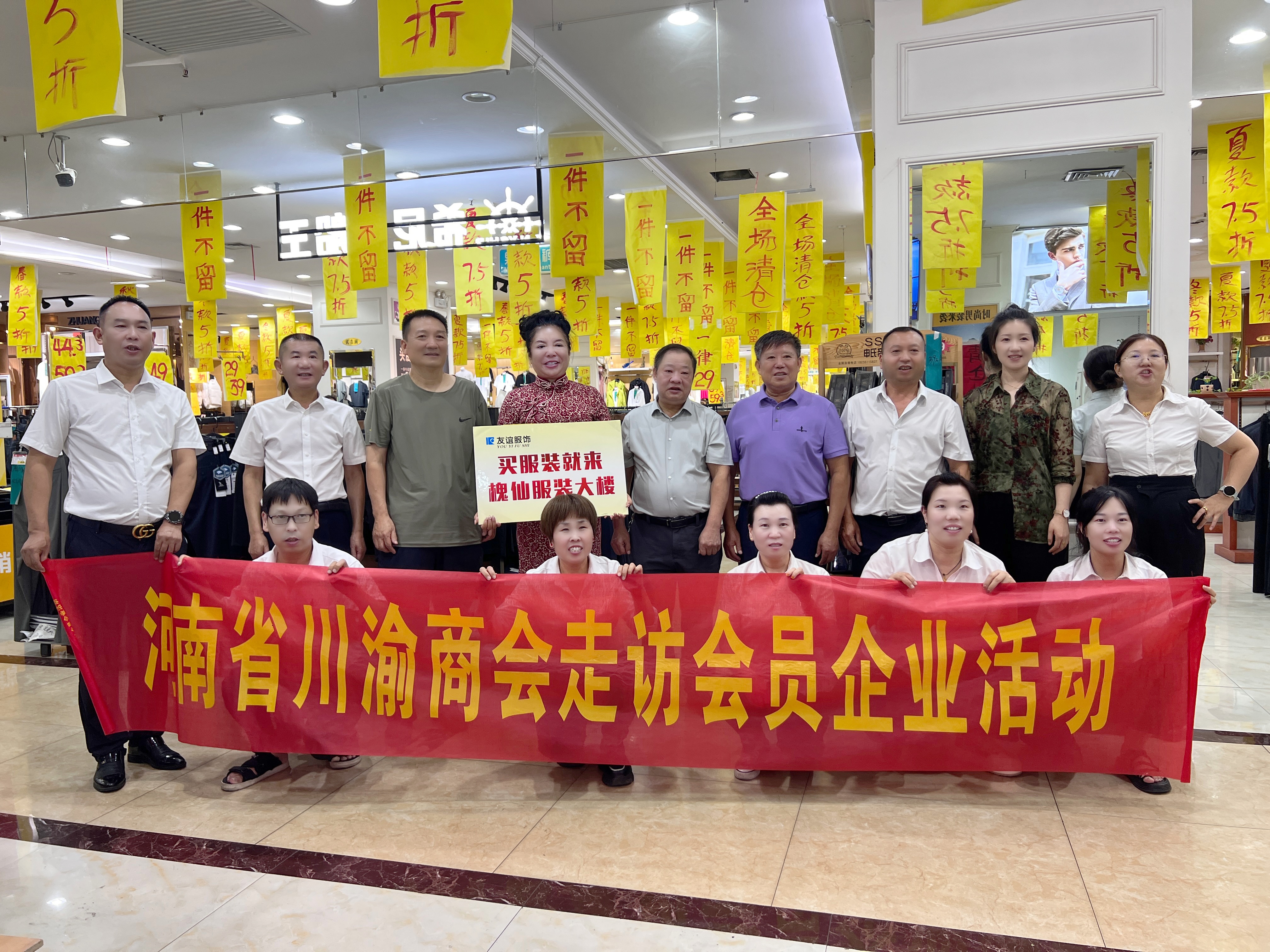 2025年7月21日下午,河南省川渝商会会长薛荣带领商会执行会长陈海、常务副会长何勇、秘书处人员戚太明、付强、丁乐等前往位于济源市槐仙服装大楼商场的副会长单位——河南友谊商贸有限公司开展走访调研。河南友谊商贸有限公司董事长、河南省川渝商会副会长刘稀林及团队热情接待并陪同参观座谈。