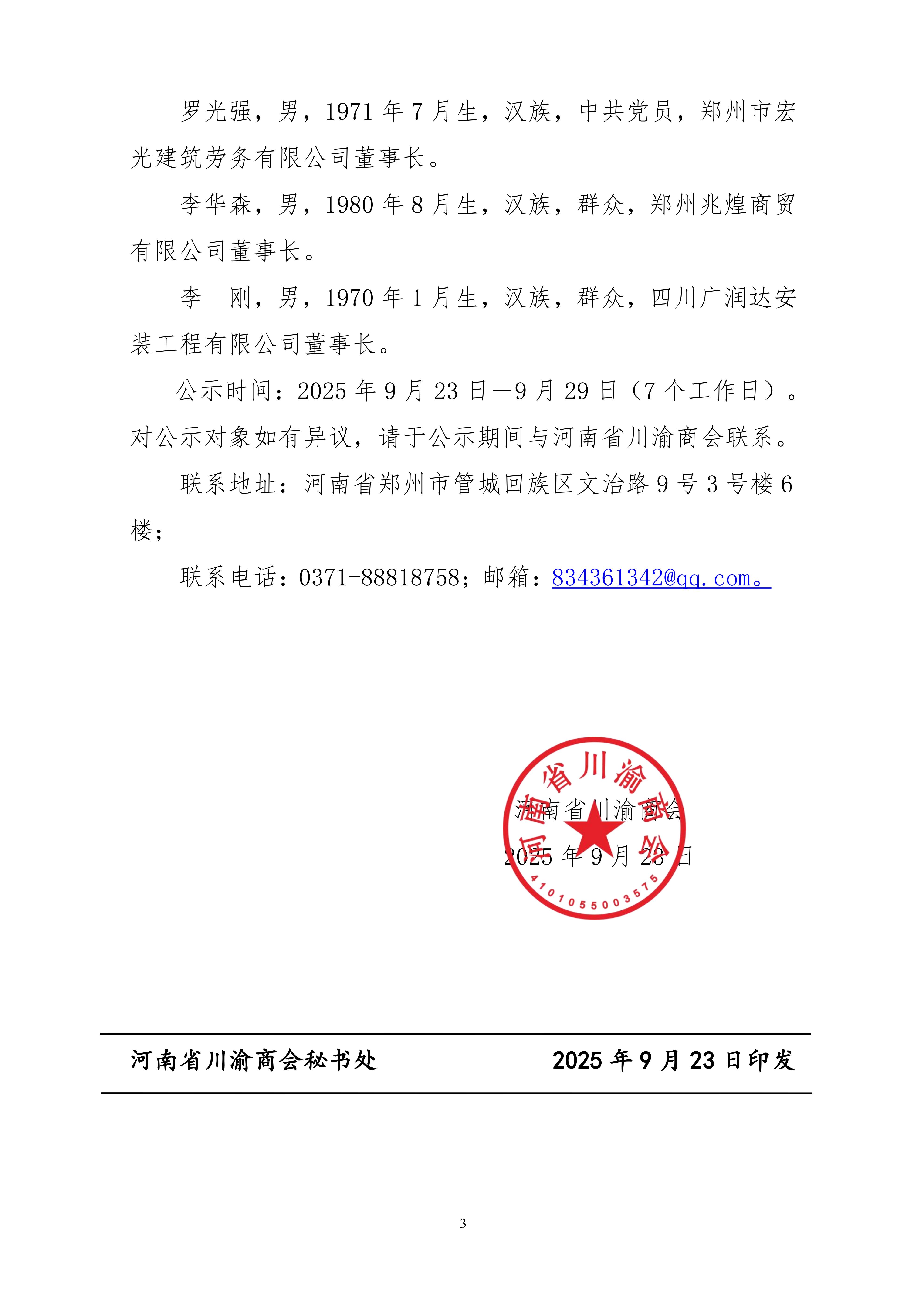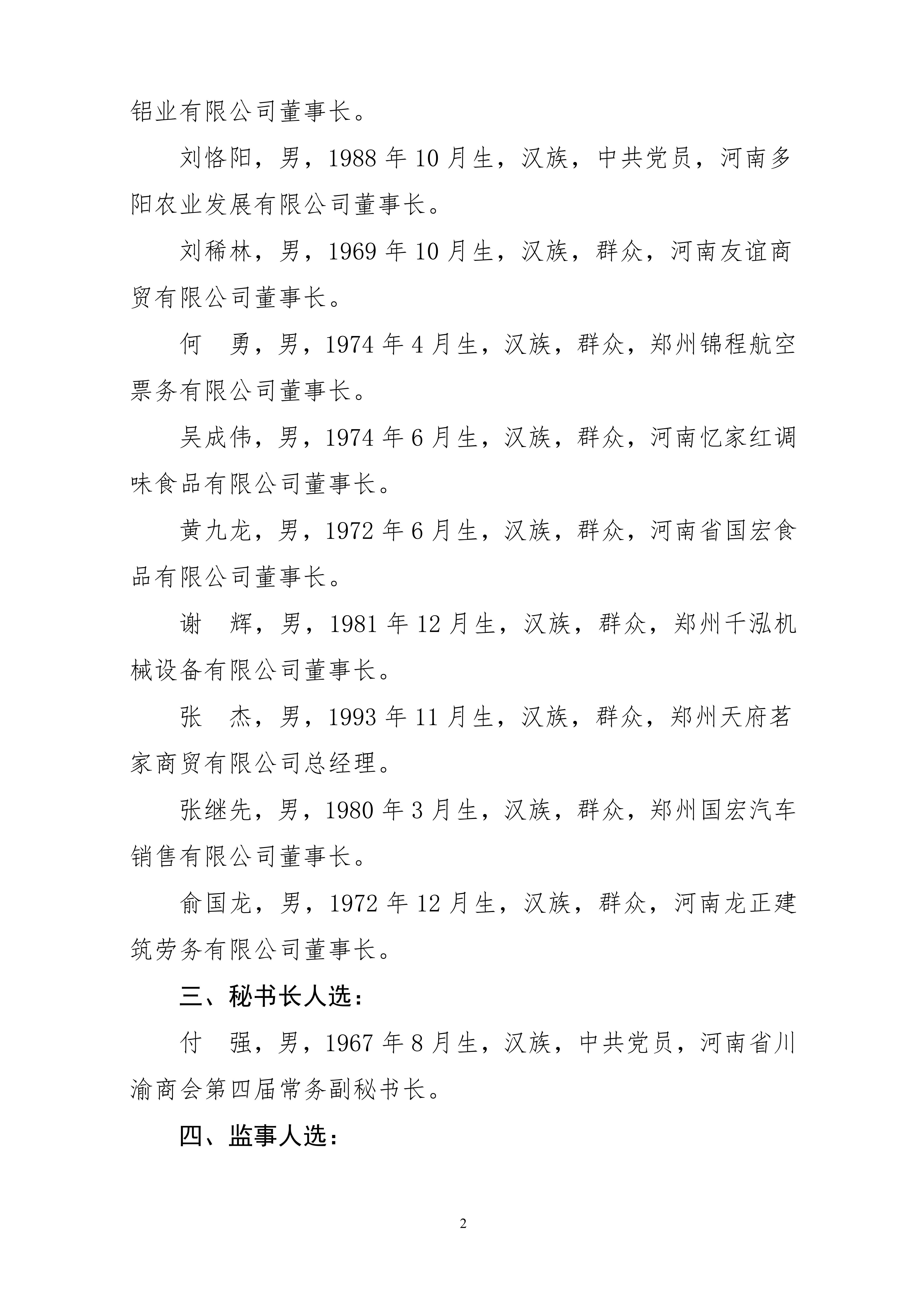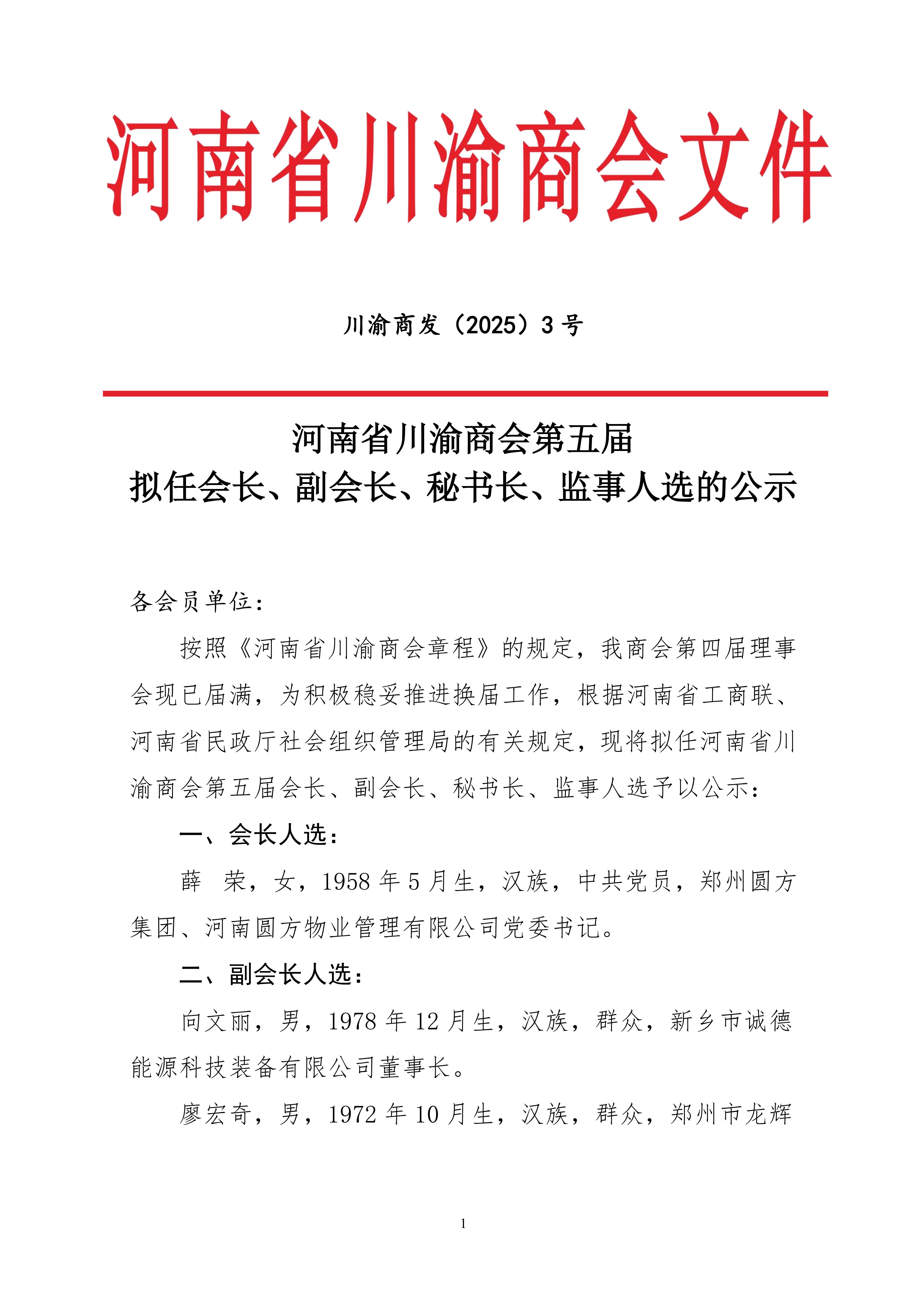 您所在的位置 首页 - 新闻中心 - 河南省川渝商会第五届拟任会长、副会长、秘书长、监事人选的公示