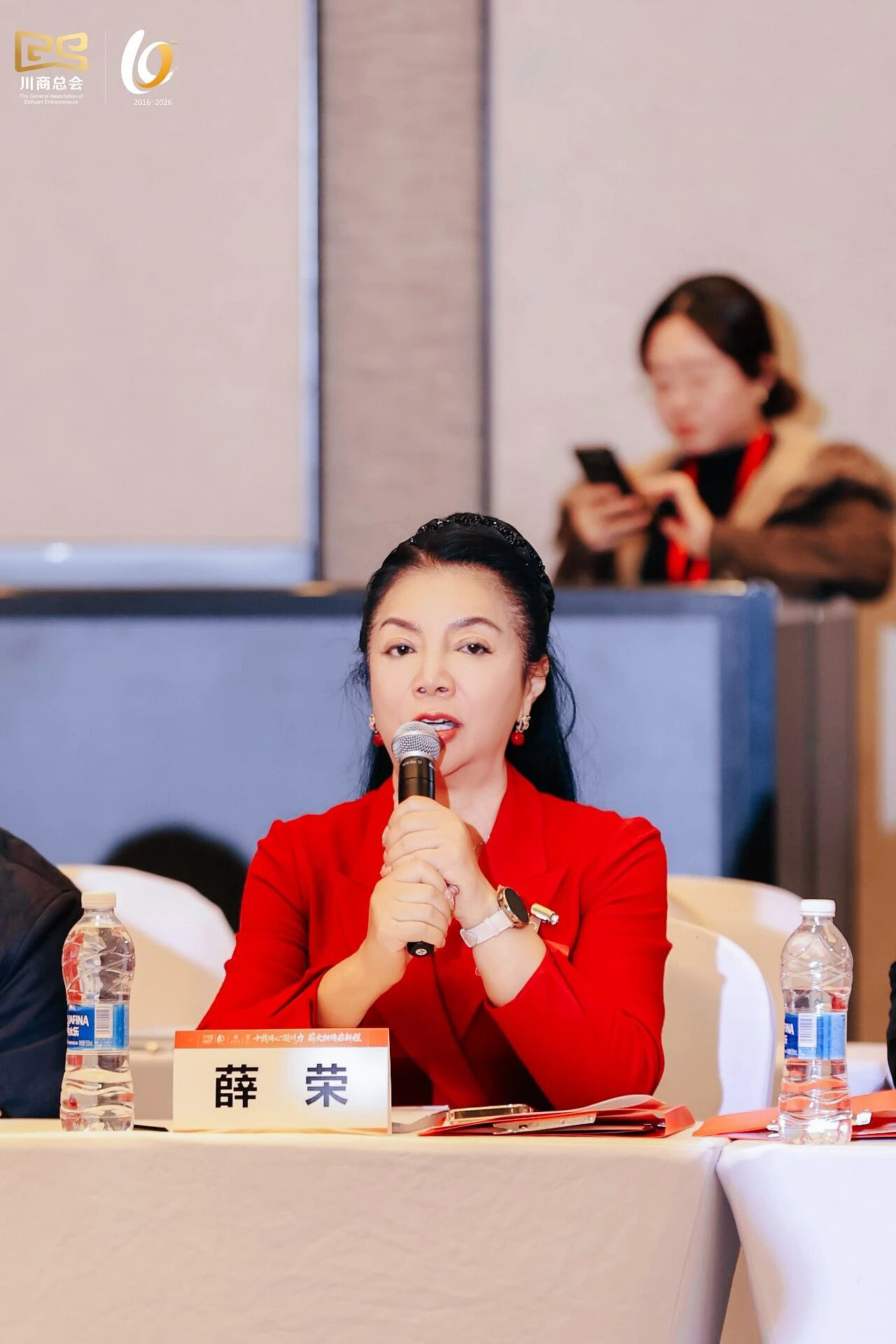在自由交流环节,薛荣会长围绕“新时代商会高质量建设”议题积极建言献策。她指出:“商会作为政企沟通的桥梁、乡情联结的纽带,高质量发展的核心在于资源整合与服务升级。河南省川渝商会将以此次协同发展倡议为契机,进一步加强与全国兄弟商会的联动协作,精准对接豫川两地产业资源,推动优势互补、合作共赢,让川商力量在跨区域协作中持续壮大。”薛荣会长对大会发布的资源白皮书与川商基金布局深表认同,她表示将把此次活动对接的优质资源精准传递给在豫川渝籍企业,助力大家把握“十五五”开局机遇,实现转型升级与稳健发展。