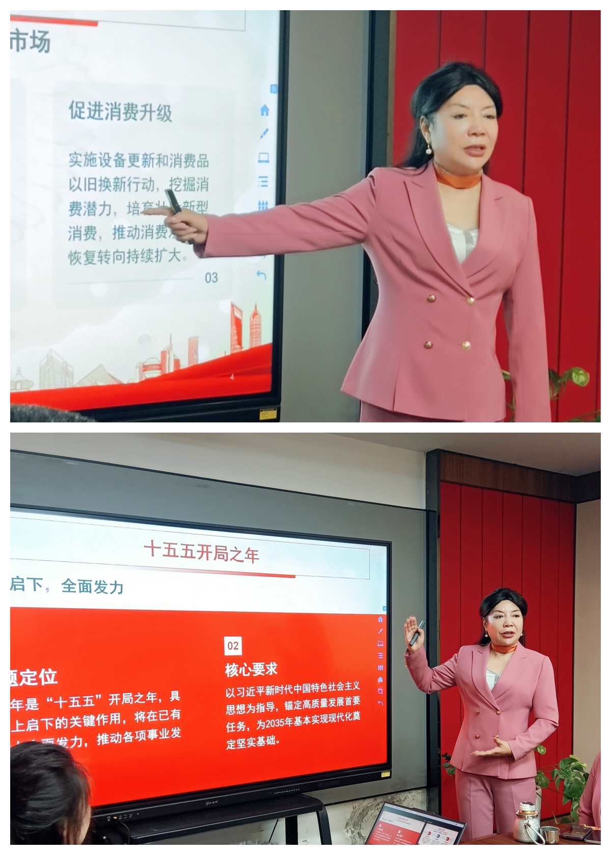 上午10时,会议在庄严的国歌声中拉开帷幕。薛荣会长带领全体参会人员深入学习了2026年全国两会会议精神并结合商会实际,对两会精神进行了深度解读。她强调,商会上下要提高政治站位,将商会发展置于国家“十五五”规划前瞻布局的高度,确保议题设置精准对接高质量发展需求,引领在豫川渝企业家紧跟国家步伐,把握时代机遇。