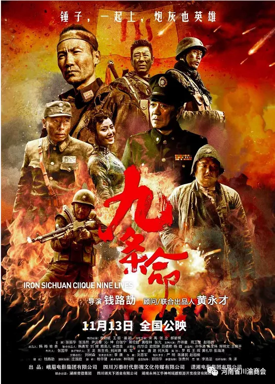由川商联合制作的抗战题材电影《九条命》影片于11月13日全国公映。