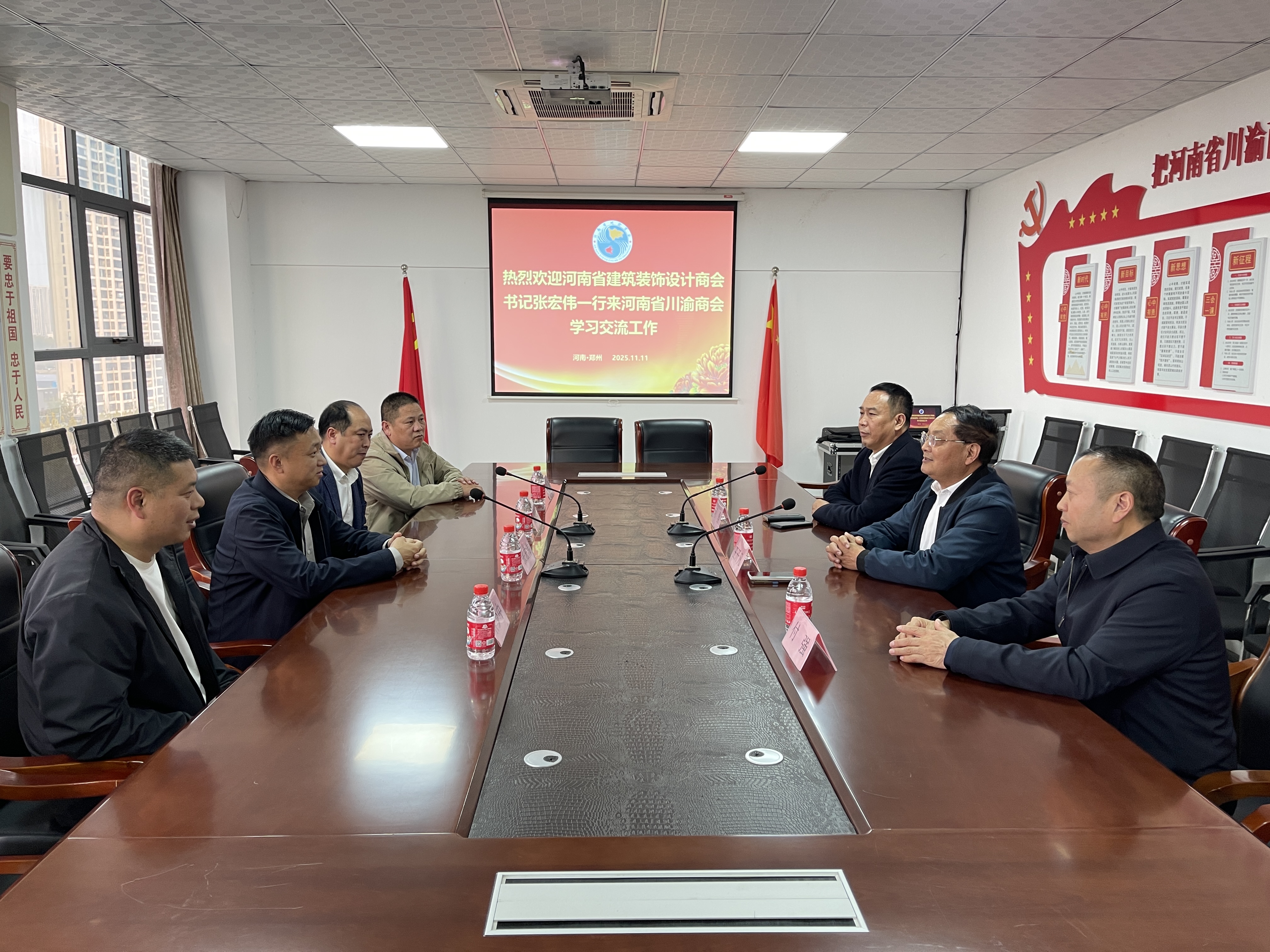 2025年11月11日,河南省建筑装饰设计商会党支部书记张宏伟带领副秘书长虞四海、种少中,办公室主任栗红磊等一行来河南省川渝商会学习交流工作。河南省川渝商会党委书记、名誉秘书长王开凡,常务副会长何勇,常务副秘书长付强,副秘书长、办公室主任丁乐等陪同了本次活动。