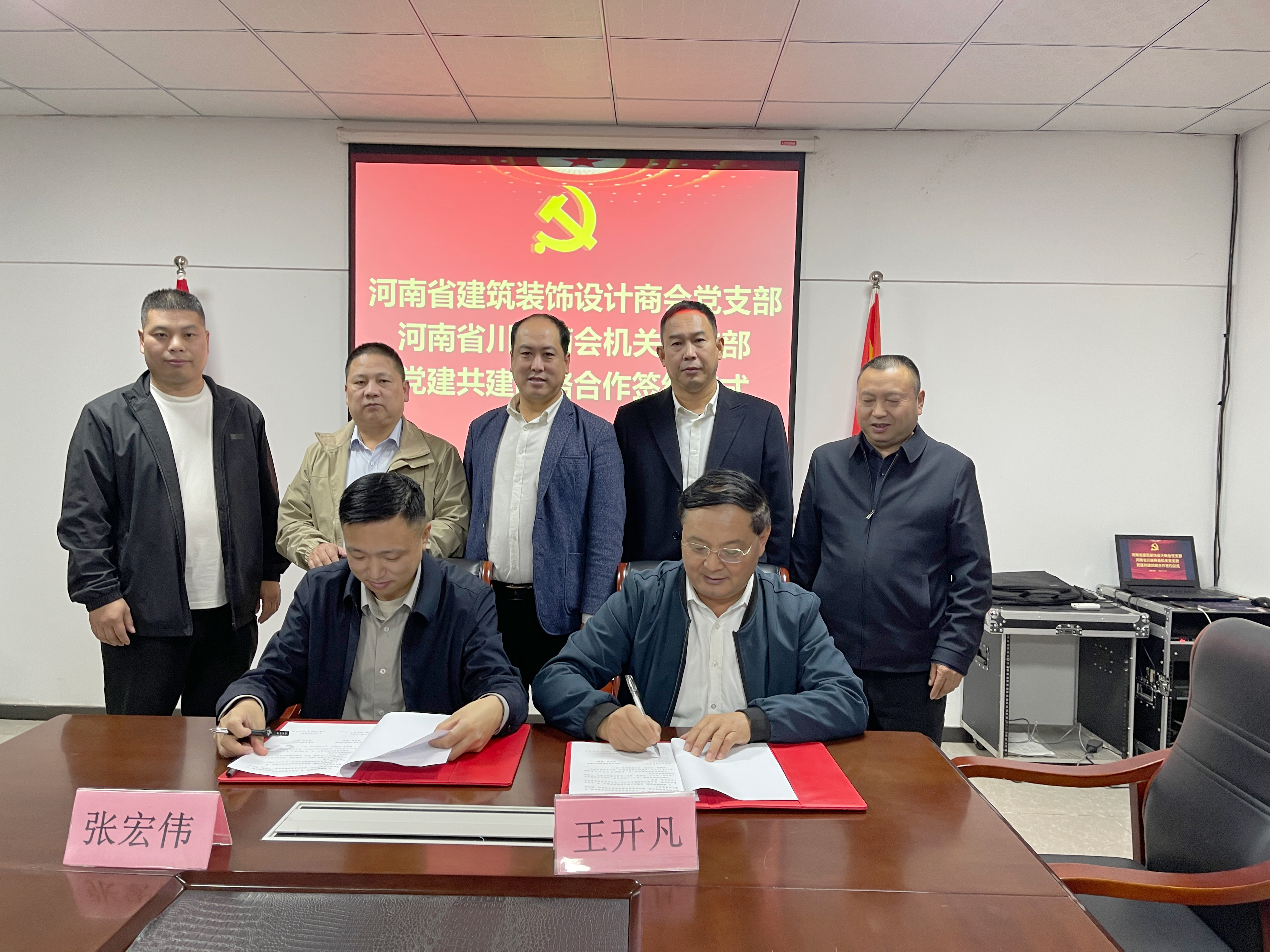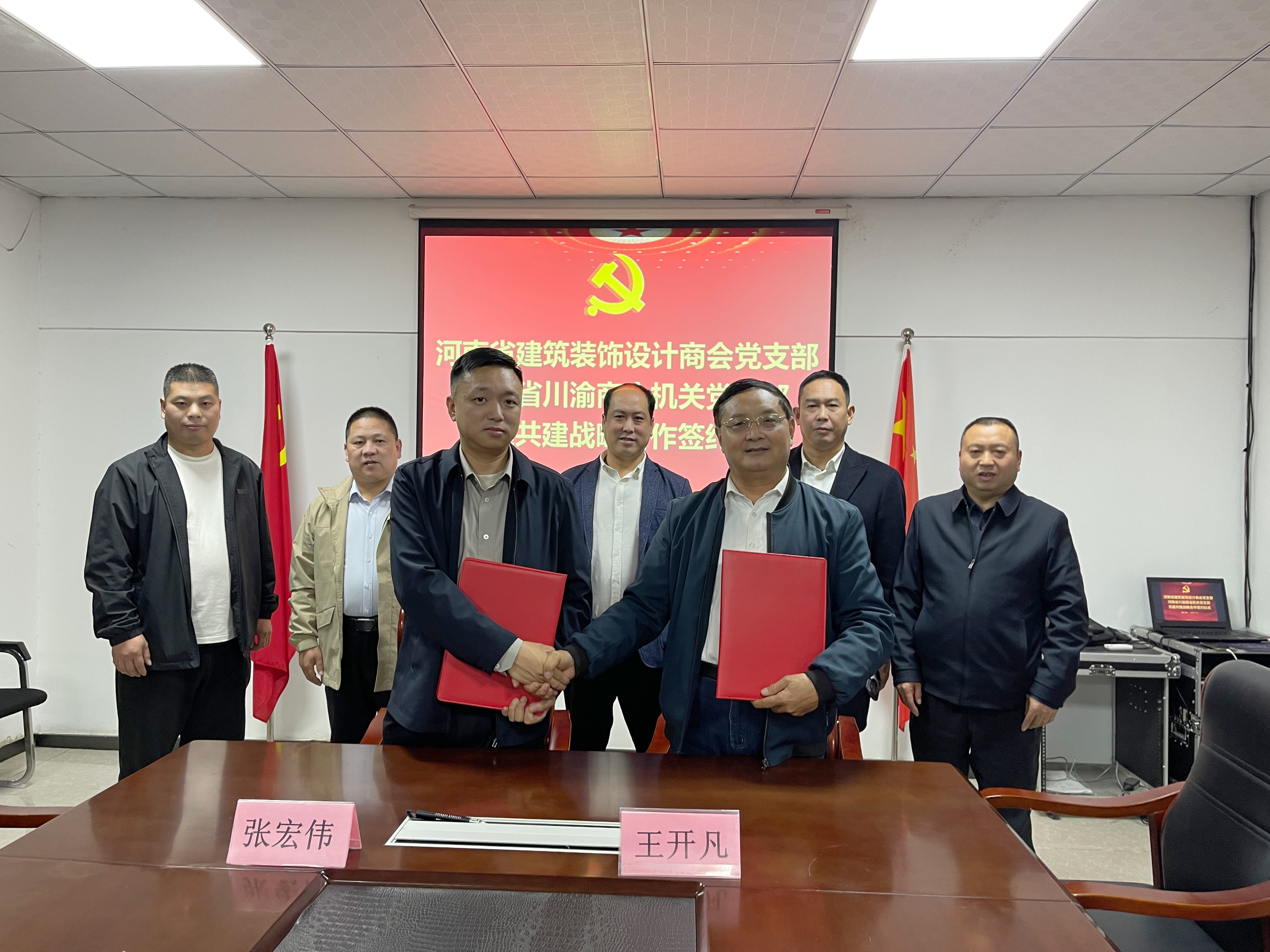为了更好地推进两家商会党的建设工作上台阶上水平,让党旗引领着商会在以中国式现代化全面推进强国建设、民族复兴伟业的新时代新征程上贡献智慧和力量。举行了河南省川渝商会机关党支部与河南省建筑装饰设计商会党支部党建共建战略合作签约仪式,王开凡书记、张宏伟书记代表党组织在协议书上签了字。