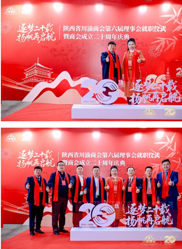 大会回顾了陕西省川渝商会20年发展历程,完成新老会长交接,第六届会长杜云钦作就职发言并规划发展蓝图。陕川渝三地相关领导及川商总会、秦商总会负责人分别致辞,对商会发展给予肯定并寄予厚望。现场还举行了理事会授牌、先进个人表彰仪式,陕西省川渝商会与22家在陕川渝籍商会及多家跨区域机构签订合作协议,深化协同发展。文艺表演与互动抽奖环节穿插其间,现场氛围热烈融洽。