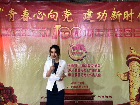 2019年4月27日,由河南省川渝商会团委、四川团省委驻河南工委、重庆团市委驻河南工委联合主办的纪念五四运动100周年“青春心向党,建功新时代”主题团日活动在郑州举行。河南电视台节目主持人李萌主持了本次活动。团委领导班子成员、团员青年代表和应邀参加活动的河南省川渝商会副会长以上领导人员、友好商协会领导同志共100余人过了一个主题鲜明、形式新颖、丰富活泼的团日活动。