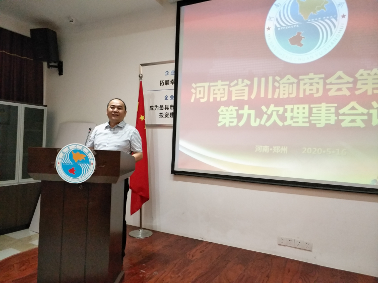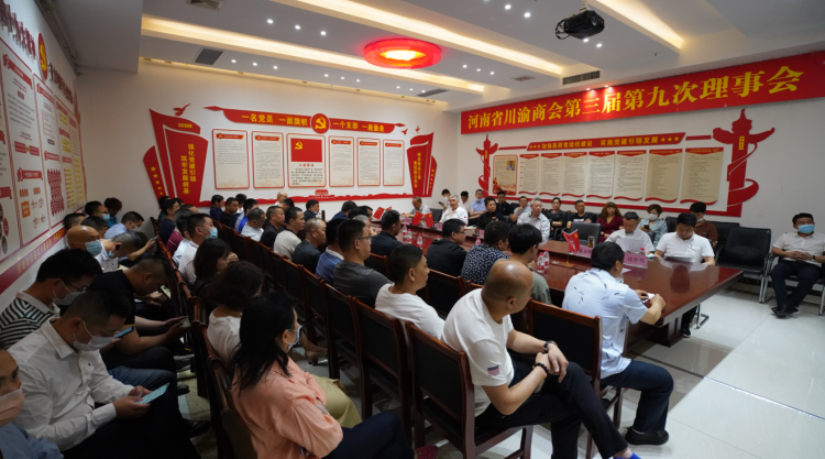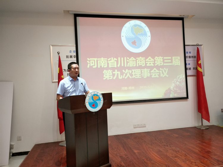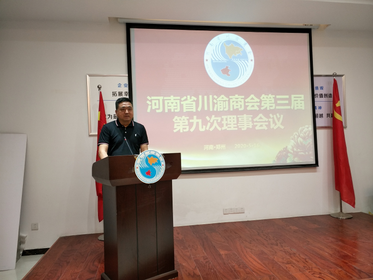 2020年5月16日,河南省川渝商会第三届第九次理事会议在河南川渝大厦召开。河南省川渝商会会长李贤祥,党委书记、名誉秘书长王开凡,党委副书记、监事长黄永明,执行会长兼建筑业分会会长罗光强,常务副会长兼秘书长沈仕伟和理事会成员共109名同志出席了本次会议。常务副会长兼秘书长沈仕伟主持了本次会议。