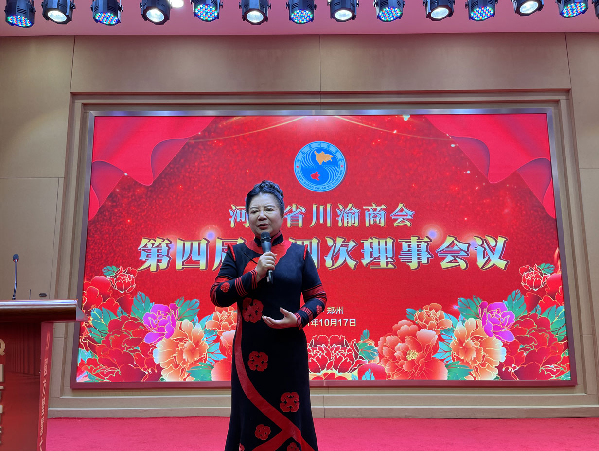 2021年10月17日,河南省川渝商会第四届第四次理事会议在郑州圆方非公党建学院一楼会议厅举行。河南省川渝商会党委第一书记、会长薛荣,党委书记、名誉秘书长王开凡,常务副会长、新乡市川渝商会会长向文丽,常务副会长、洛阳市川渝商会王林章,常务副会长、济源市川渝商会刘稀林,常务副会长、许昌市川渝商会会长张烈均,常务副会长、川渝商会妇联主席何媛和常务副会长、副会长、常务理事、理事共72人出席了本次理事会会议。河南电视台卫星频道、《企业家日报》、中国新闻社和璀璨中原文化艺术院等新闻媒体参加了会议。河南省川渝商会常务理事侯沐希主持了本次理事会议。
