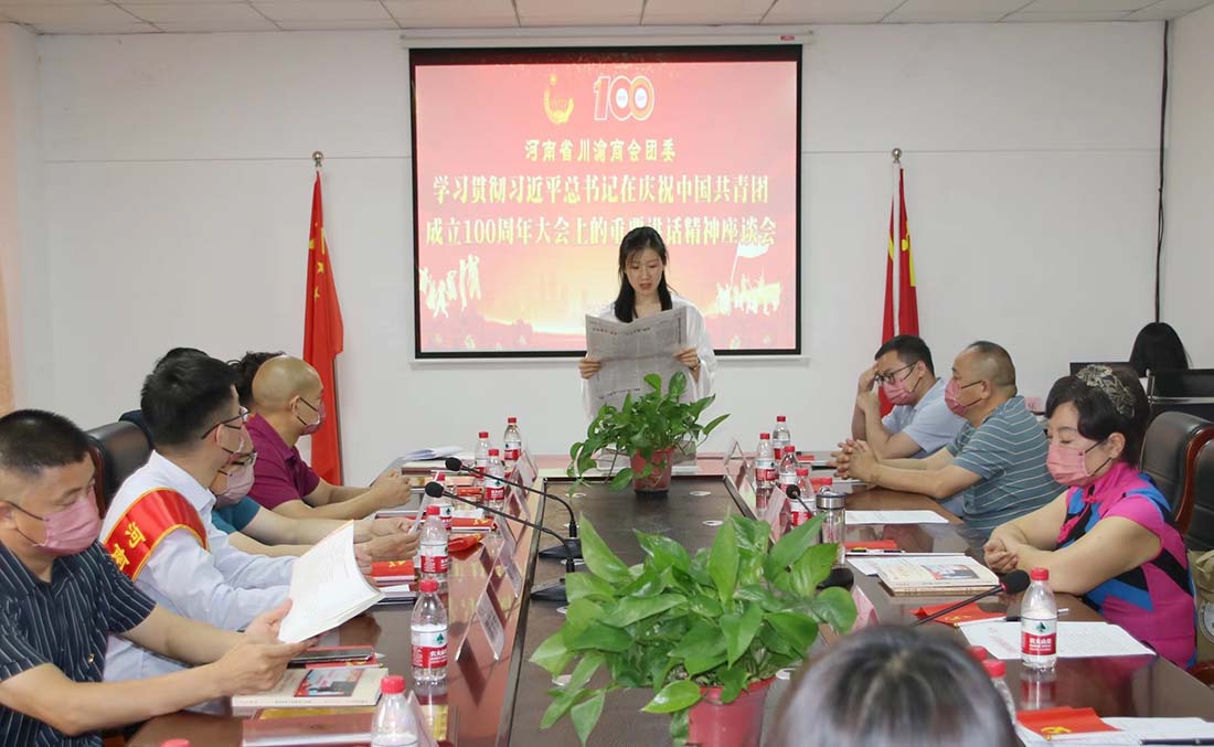 河南省川渝商会团委学习习近平总书记在中国共青团成立100周年大会上的重要讲话精神座谈会,在全体与会人员挥舞团旗、精神抖擞、豪情满怀高唱中国共青团团歌声中结束。