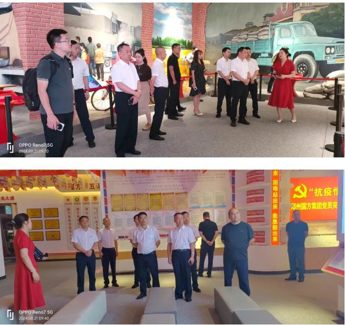早上9点,张勋图书记一行驱车来到河南省川渝商会会长企业郑州圆方集团,受到薛荣会长及团队的热烈欢迎。在圆方集团解说员的引导下,大家在圆方非公党建教育基地参观了信仰的力量党建展馆、圆方群团组织、中国微党史国史馆和退役军人“一中心一基地”、新时代文明实践中心、廉政长廊。