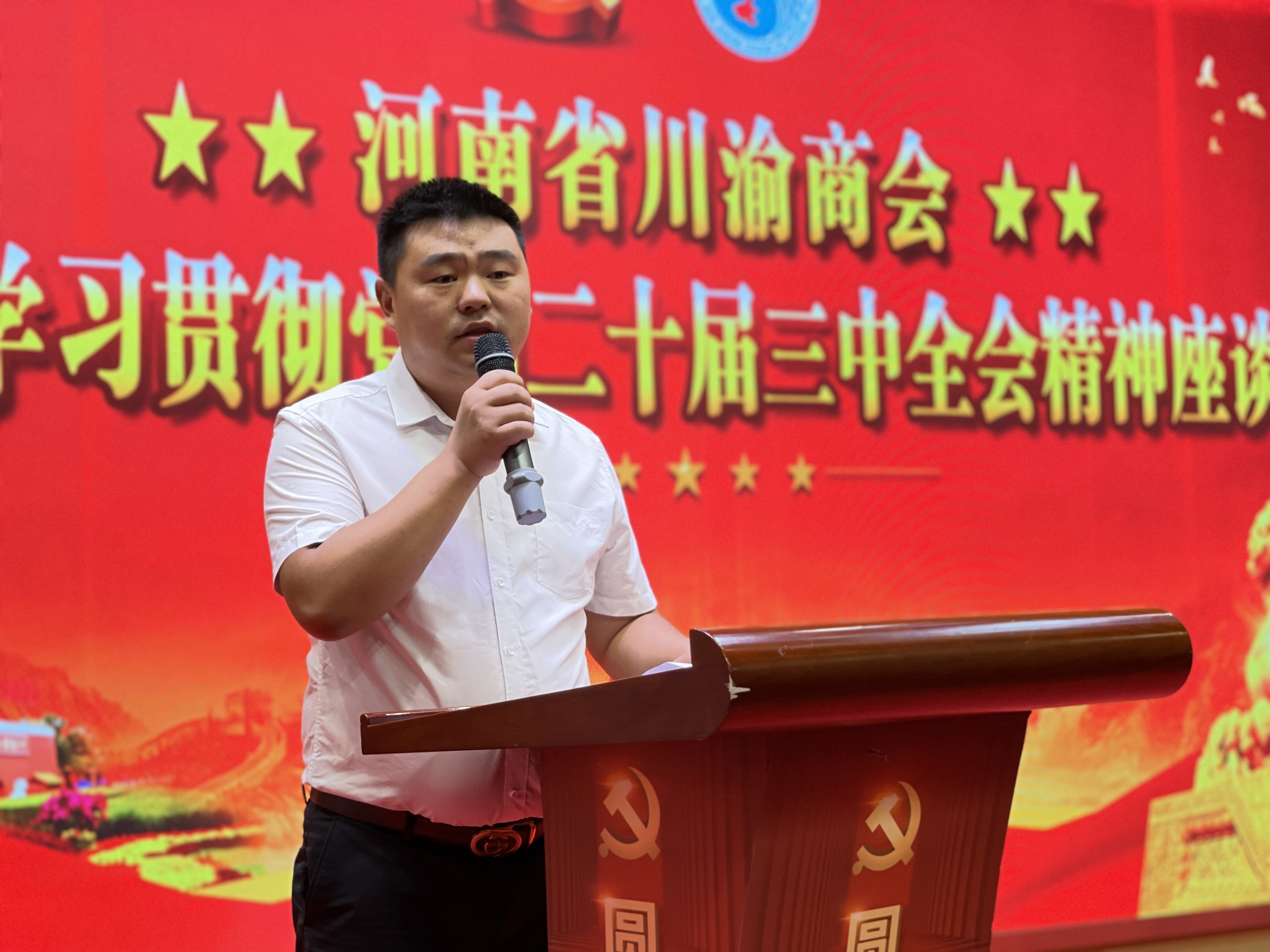 河南省川渝商会副会长、河南省川渝商会团委常务书记、郑州天府茗家商贸有限公司董事长张杰分享了学习贯彻党的二十届三中全会精神体会。